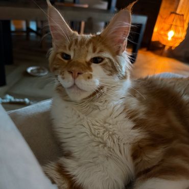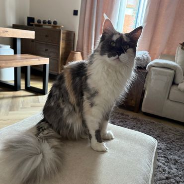 I currently have two rescues, Prinny and Tilly and three Maine Coons Ralf, Rufus and Mary.